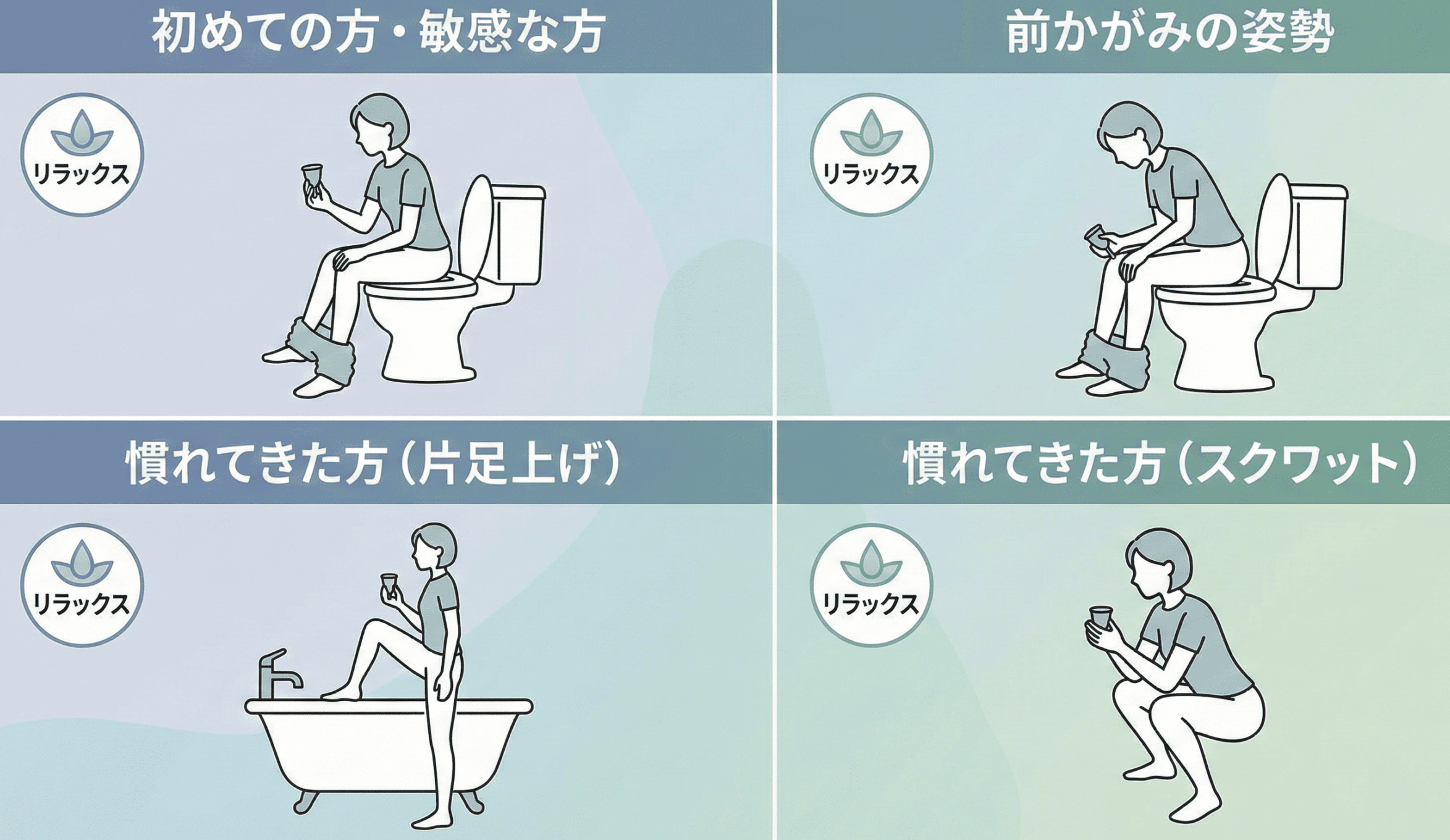 月経カップの挿入時に痛みを感じる原因の多くは、力の入りすぎや角度の誤り、準備不足によるものです。
